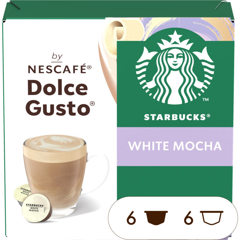 Geinspireerd op de klassieke Starbucks white mocha. Hebben we deze volle en rijke drank gecreeerd. Die je thuis kunt bereiden met dezelfde kwaliteitsvolle 100% arabica bonen als in de koffiehuizen. Koffiecups voor het Nescafe Dolce Gusto systeem 100% arabica Vol en rijk