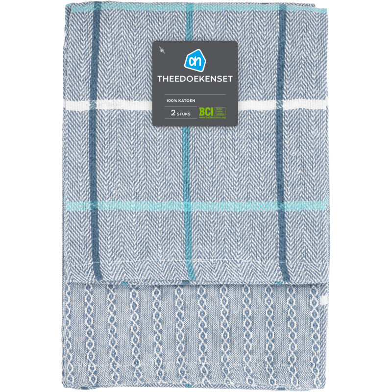 Ah theedoek blauw set van 2. 2 theedoeken 50x70cm 100% katoen
