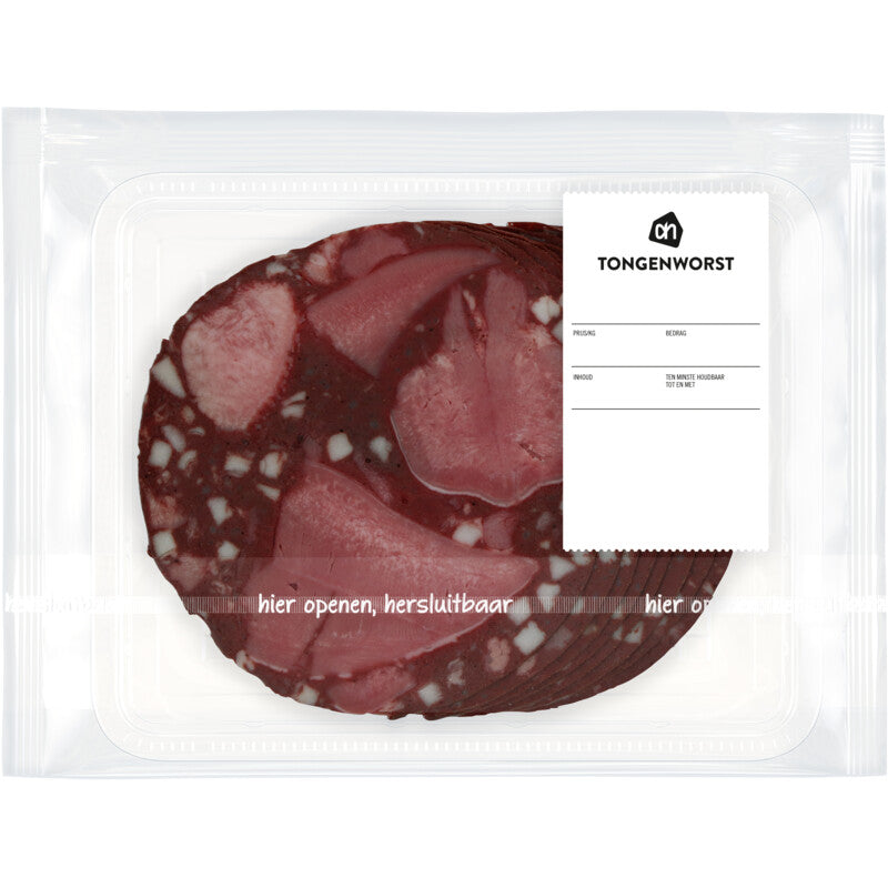 Ouderwets lekkere tongenworst. Gemaakt van varkenstongen, spekblokjes en varkenslever. Lekker op de boterham. Heerlijk op smaak gebracht door een specifieke kruiding. Licht zoute smaak.