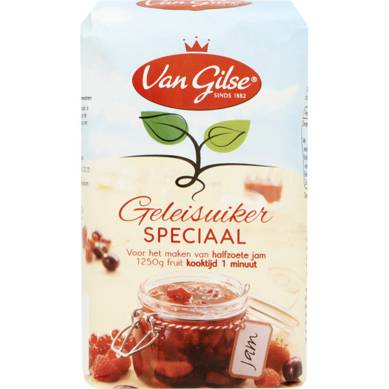Met Van Gilse Geleisuiker Speciaal maak je snel en gemakkelijk je eigen halfzoete jam Slechts 1 minuut kooktijd Een mix van fijne krisalsuiker en pectine