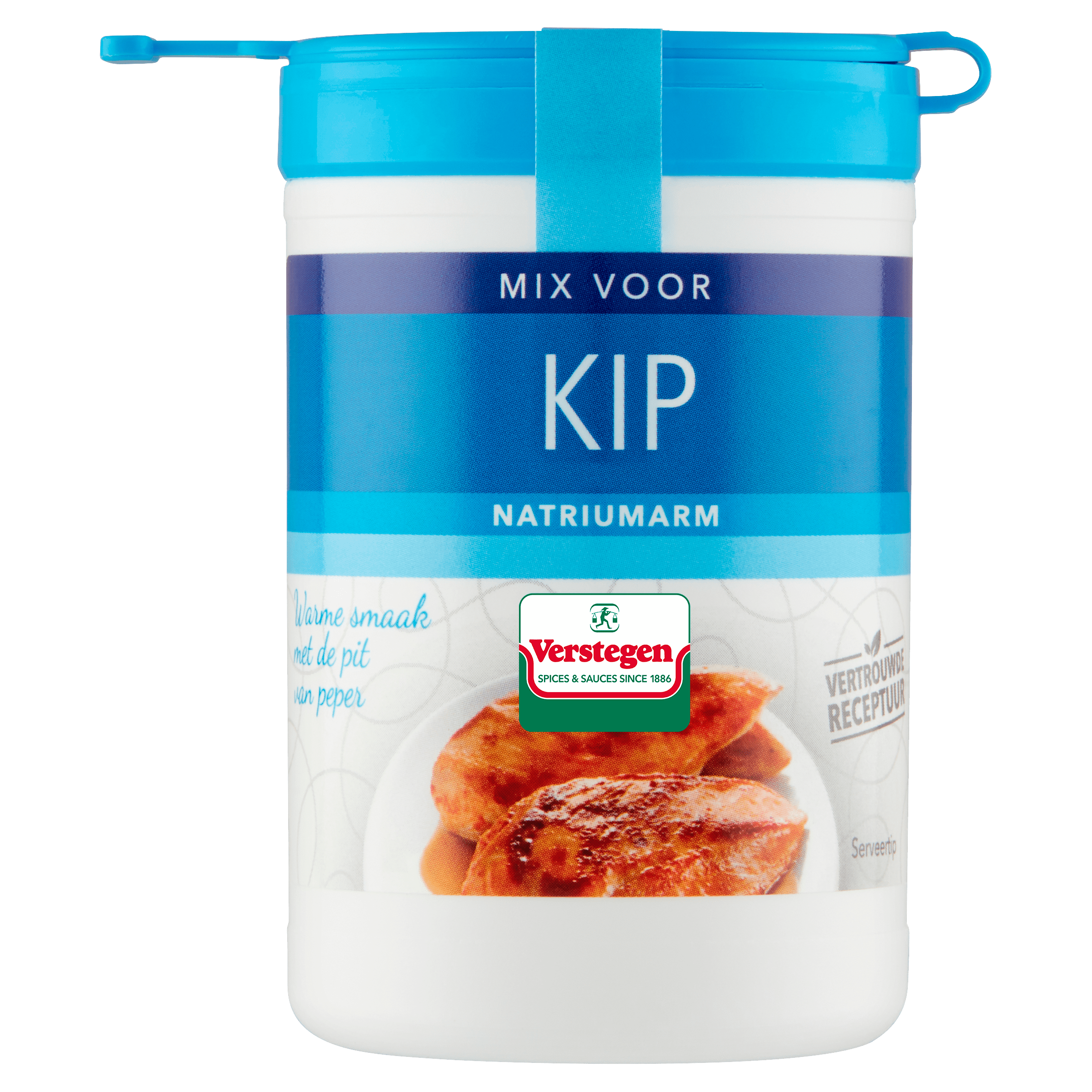 Bereidingswijze (voor 4 personen): wrijf 1 kg drumsticks/kippenpoten of een hele kip in met ca. 2 el (20 g) Verstegen mix, of wrijf 500 g kip(dij)filet in met ca. 1 el (10 g) Verstegen mix. Laat het even intrekken. Verhit een koekenpan met 2 el (olijf)olie en bak de kip op matig vuur goudbruin en gaar. Kip kan ook gegaard worden in de oven op 180°C.