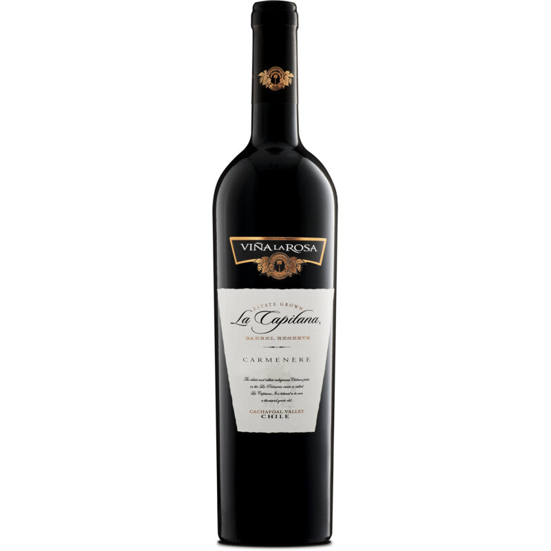 Capitana heeft betrekking op de allergrootste palmboom van dit wijn estate. Deze staat midden tussen de wijngaarden in De Carmenère is een druif die van oorsprong uit Frankrijk komt, maar waarmee uitstekende wijnen worden gemaakt in Chili. Zo goed, dat deze druif inmiddels wel een 'inheemse druif van Chili wordt genoemd! geconcentreerd met smaken van zoete pruimen, zwarte bessen en een hint van zwarte chocolade. Een zacht mondgevoel met soepele tannines.. Opgericht in 1824 is Vina la Rosa een van Chili's oudste wijnbedrijven. In 1824 besloot don Francisco Ignacio, een 'hacienda' te kopen voor zijn eerstgeboren zoon. Hij werd verliefd op het mooie landschap van Cachapoal Valley, 120 kilometer onder Santiago. Hij kocht de 'hacienda' van de eerste president van Chili, Manual Encalada. De koop omvatte niet alleen de boerderij maar in de deal zaten ook wijnvaten, wijnkelders en uit Frankrijk geïmporteerde druivenranken. Sindsdien heeft de familie zich vol passie op de wijnbouw gestort. Inmiddels staat de zesde generatie aan het roer van dit wijnbedrijf.