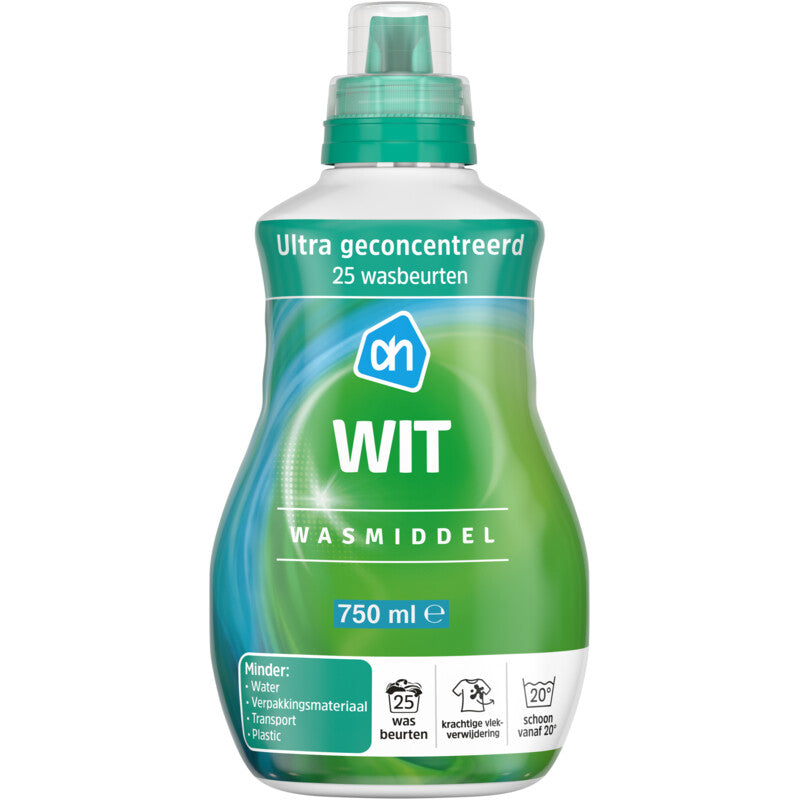Prijsfavorieten: topkwaliteit en altijd laaggeprijsd Dit product is een Prijsfavoriet. Dat zijn onze eigen-merkproducten van topkwaliteit en ze zijn altijd voordelig. Je herkent ze aan het blauwe duimpje. AH Wasmiddel wit is speciaal geschikt voor de witte was. Voor behoud van vorm en bevat actieve witmakers. Voor een schone en stralende was. Was bewust, was het liefst op 20 of 30 graden. Gebruik in combinatie met één van onze wasverzachters voor een extra zachte en frisse was. 25 wasbeurten Voor behoud van vorm en bevat actieve witmakers Krachtige vlekverwijdering en schoon vanaf 20˚ Ultra geconcentreerd: minder water, verpakkingsmateriaal, transport en plastic