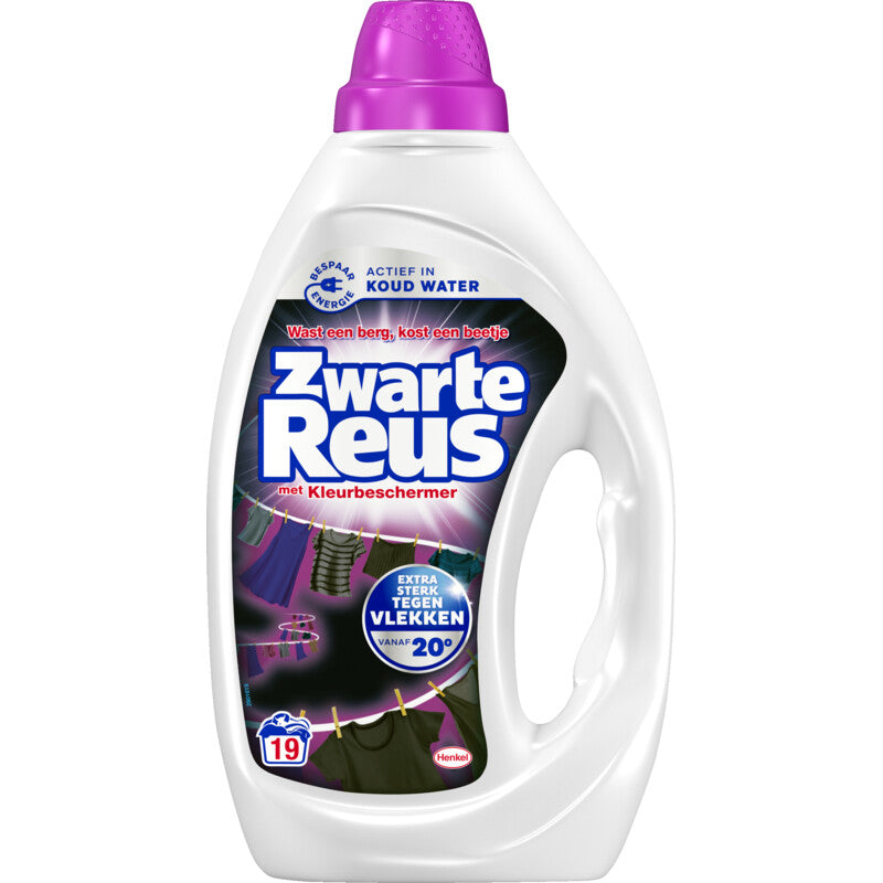 Zwarte Reus gel is het ideale wasmiddel voor gezinnen met kinderen. Dankzij zijn reuzenwaskracht is het extra sterk tegen vlekken en was je er extra veel was mee schoon. Verbeterde reuzenfrisheid, waarbij je nog langer geniet van een frisse was Extra veel schone was door de vertrouwde reuzenwaskracht Vloeibaar wasmiddel voor een stralend schone en donkere was Perfect voor families dankzij reuzenwaskracht en voordelige prijs Zwarte Reus gel is een vloeibaar wasmiddel, speciaal ontwikkeld voor de donkere was. De formule van Zwarte Reus beschermt je was en laat het langer stralen! Dankzij zijn reuzenwaskracht is het extra sterk tegen vlekken en was je er extra veel was mee schoon, al vanaf 20 graden celcius. Zwarte Reus gel is geschikt voor enorme bergen wasgoed, tegen een voordelige prijs, het ideale wasmiddel voor gezinnen met kinderen! Het resultaat? een stralend schone hygienische donkere was! Door de hoogwaardige parfumtechnologie in het vloeibare wasmiddel kun je nu een intense, langdurige frisse geur in je kleding krijgen. Daarnaast is Zwarte Reus een milieuvriendelijke en duurzame keuze, vanwege zijn lage energie- en waterverbruik. Doordat het wasmiddel al vanaf 20 graden celcius effectief is, kun je een korter wasprogramma gebruiken, zo bespaar je energie en water! Zwarte Reus wast een berg, kost een beetje!